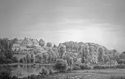 Blixen lived most of her life at the family estate Rungstedlund, which was acquired by her father in 1879. The property is located in Rungsted, 24 kilometres (15 mi) north of Copenhagen, Denmark's capital.[95] The oldest parts of the estate date to 1680, and it had been operated as both an inn and a farm. Most of Blixen's writing was done in Ewald's Room, named after author Johannes Ewald.[96]