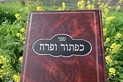 Ishtori Haparchi was the author of the first Hebrew book on the geography of the Land of Palestine,[7] Sefer Kaftor va-Ferach (Hebrew: ספר כפתור ופרח), literally "Book of Bulb and Flower",[2] or "Knob and Flower," written in 1322 in the Land of Israel and published in Venice in 1549.[8] "Knob and Flower" is a Hebrew idiom meaning "work of art," and is derived from the description of the menorah in Exodus 37:17. In the context of the book it refers to the agrarian laws practised by the people of the land. Haparchi lists the names of towns and villages in Palestine and discusses the topography of the land based on first-hand visits to the sites. He describes its fruits and vegetables, and draws upon earlier rabbinic commentaries, such as the commentary compiled by Rabbi Isaac ben Melchizedek of Siponto.[9]