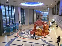 The complex also includes a three-floor shopping mall, a six-floor car park* and a three-floor club house.[5] Facilities provided by the clubhouse include a library, gym room, BBQ area, band room, tennis courts, basketball court, 4 bowling ball lanes, badminton courts, music rooms, play room, snooker room, an indoor and outdoor swimming pool, a bar, a lounge, meeting rooms, study room, and a squash court.[5]