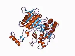 - ^ a b Hurley JH, Thorsness PE, Ramalingam V, Helmers NH, Koshland DE, Stroud RM (November 1989). "Structure of a bacterial enzyme regulated by phosphorylation, isocitrate dehydrogenase". Proc. Natl. Acad. Sci. U.S.A. 86 (22): 8635–9. doi:10.1073/pnas.86.22.8635. PMC 298342. PMID 2682654.