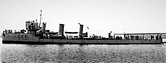 Giacinto Carini was an Italian La Masa-class destroyer. Commissioned into service in the Italian Regia Marina ("Royal Navy") in 1917, she served in World War I, participating in the Adriatic campaign. During the interwar period, she took part in operations during the Corfu incident in 1923 and was reclassified as a torpedo boat in 1929. She took part in the Mediterranean campaign of World War II. After the fall of Fascist Italy and the Italian armistice with the Allies in 1943, she switched to the Allied side and operated as a unit of the Italian Co-belligerent Navy until 1945. A part of the Italian Navy (Marina Militare) after the Italian Republic replaced the Kingdom of Italy in 1946, she remained in service during the Cold War and was reclassified as a coastal minesweeper in 1953. Stricken in 1958, she subsequently served as the training hulk GM 517 until scrapped in 1963.