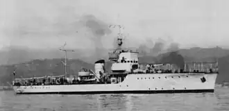 In June 1939 SAFAR 600 (the first Italian sonar or echo-goniometer) was installed and successfully tested on Albatros.[1] However, production was halted due to a need to produce sonars for submarines. The results of sonar tests were actually pretty good, Albatros was able to identify targets at 3,000–3,500 meters (9,800–11,500 ft), and sometimes even at 7,000 m (23,000 ft) in early 1940. The maximum speed of the ship in these experiments was restricted to 12 knots (22 km/h; 14 mph).[1] With the outbreak of hostilities, Albatros was assigned to patrol duty in the Strait of Messina, and these experiments were halted. Strong currents present in the Strait of Messina significantly interfered with the sonar equipment, and its use was severely limited during her active duty.[1]