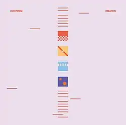 Iteration is the last of a series of records by Seth Haley, Galactic Melt (2011), Wave 1 (2014), and Silicon Tare (2016), that tell the story of a space traveller named Com Truise.[1] Haley first discussed the last chapter of the story in an April 2016 interview with Magnetic magazine: "It'll have some closure within it, but I think it'll be dark and light at the same time. As much as I'm striving to put an end to this story, I think it'll be still open-ended, kind of a to-be-continued sort of thing."[2] Described by Haley as a tale about escaping an oppressed society,[3] Iteration involves Truise and his alien lover who try to escape from the planet Wave 1 to enjoy each other's company in space.[1] Haley titled the LP "Iteration" as a "weird smirky smile" to the repetitive nature of most electronic music.[4] Haley's cover artwork for Iteration features red lines representing the "iteration" aspect of the record and symbols representing the obstacles Com Truise goes through to escape from Wave 1.[3]