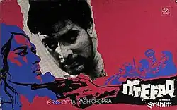 Ittefaq (English: Coincidence) is a 1969 Indian mystery thriller film produced by B. R. Chopra and directed by his brother Yash Chopra. The film stars Nanda and Rajesh Khanna in the lead with Sujit Kumar, Bindu, Madan Puri and Iftekhar playing supporting roles and has music by Salil Chowdhury. It is based on the 1965 American film Signpost to Murder (an adaptation of a 1962 play of the same name by Monte Doyle),[1] which had earlier been remade into a Gujarati play Dhummas starring Sarita Joshi.[2]