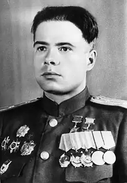 Ivan Alekseyevich Vorobyov (Russian: Ива́н Алексе́евич Воробьёв; 26 August 1921 — 17 March 1991) was an Il-2 pilot in the Soviet Air Force during World War II who was twice awarded the title Hero of the Soviet Union.[1]