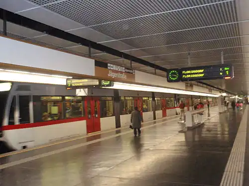 Jägerstraße is a station on U6 of the Vienna U-Bahn.[1] It is located in the Brigittenau District. It opened in 1996.