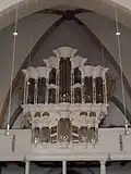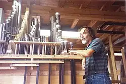 The workshop operated as Jürgen Ahrend Orgelbau from 1972.[3][4] Ahrend was also commissioned to restore the organs and their tuning for the Arp Schnitger organs in the Martinikerk in Groningen (including the main organ in the west gallery), the organ of St. Jacobi in Hamburg and organ of St. Ludgeri in Norden.[3] In Hamburg, the organ pipes had been removed from the organ case for safety in 1942. The church was destroyed by bombing. In the restored church, Ahrend used the historic pipes in a new case to revive the sound he had in mind.[5]