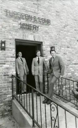 The Turgeon & Lohr Winery was founded in 1972 when Jerry Lohr and Bernard “Bernie” Turgeon broke ground on 280 acres in what would become the Arroyo Seco AVA in Monterey County.[4] In 1974, Turgeon & Lohr Winery opened in San Jose, California, after taking over the closed Falstaff Brewery.[5] Peter Stern, a winemaker from Napa Valley, joined the company in 1974. He designed the winery with stainless steel tanks, temperature control fermenters, and hundreds of 60-gallon oak barrels.[6]