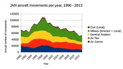 - ^ "Passenger Traffic Reports | Jackson-Medgar Wiley Evers International Airport". www.transtats.bts.gov. Retrieved July 6, 2023.
