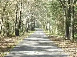 The City of Jacksonville purchased an unused east/west former Atlantic Coast Line Railroad[1] corridor from CSX Transportation Inc. in December 1992, in conjunction with the Florida Greenways and Trails Program and with approval of the Florida Department of Environmental Protection.[2] The railroad line was originally part of the former Jacksonville and Southwestern Railroad. The trail runs from Jacksonville’s Imeson Road to Brandy Branch Road near Baldwin for a distance of approximately 14.5-mile (23.3 km). It is 100-foot (30 m) wide, with a 12-foot (3.7 m) asphalt thoroughfare suitable for nonmotorized wheeled conveyances, such as bicycles and wheelchairs.