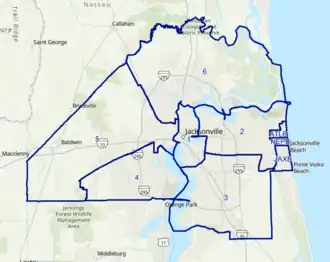- District 1: Downtown, Springfield, Eastside, San Marco, Riverside