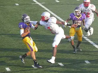 Clowney was born February 14, 1993, in Rock Hill, South Carolina.[3] He attended South Pointe High School, where he played for the Stallions high school football team.[4] Already 6’ 3” and 200 lbs as a freshman in 2007, he played running back and defensive end for the school's junior varsity team.[5] In his sophomore year he joined rising seniors Stephon Gilmore and DeVonte Holloman (both four-star recruits) on a South Pointe varsity coming off a 9–4 season. By spring practice, Clowney became a permanent fixture at defensive end.[5] "We knew we had something special. He was 13 years old in that big athletic body. He was wreaking havoc on our offense that spring and fall," said Bobby Carroll, his coach at South Pointe.[5] South Pointe went 15–0 for the season, including a 35–14 win over town-rival Northwestern High at Memorial Stadium for the 2008 South Carolina AAAA Division II title and a No. 3 spot in the annual MaxPreps high school ranking.[6] Despite playing nearly the entire season with a bone spur in his foot, Clowney finished with 17 sacks. He opted to have surgery on the foot in January 2009.[5]