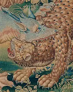 - landscape and animal scenes (verdure)[3] (inventory number of the Wawel Museum 19 - 78) created around 1560, according to design by an unknown artist from the circle of Pieter Coecke van Aelst[13] (sometimes associated with Willem Tons),