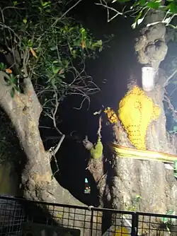 Jagad Rakshaka is considered the saviour deity and he is believed to descend for all forms of life in the planet. The temple is revered in Nalayira Divya Prabandham, the 7th–9th century Vaishnava canon, by Thirumangai Alvar in one hymn. The temple is classified as a Divya Desam,[5] one of the 108 Vishnu temples that are mentioned in the book. The temple is associated with Ketu, one of the Navagrahas, the nine planet deities of Hinduism. While Vishnu sent his discus to chase the sage Durvasa, the other symbol of him, the conch, got prominence. The conch is believed to have appeared in the jack fruit tree behind the sanctum. Devotees worship the conch in the tree in the temple and during festive occasions, perform special rituals.[1]