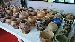 There is no major industry in the municipality except for the Mecoacán oil field. Manufacturing is limited to handcrafts and food processing by small family businesses.[1] One known food industry here is the production of cured meats such as head cheese and longaniza sausage.[4] The main local handcraft is the drying and decoration of gourds which were traditionally used for storage and food service, but today are mostly created for tourists.[1] The gourd, called a jicara, is traditional important as a vessel for chocolate. Today, it is still traditional to serve a chocolate drink called pozol in these gourds.[6]