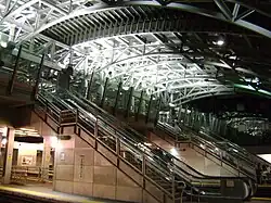 The Jamaica AirTrain JFK station opened on December 17, 2003, along with the rest of the AirTrain JFK system.[43] The station was designed by Voorsanger Architects, and was done in a manner which would make passengers feel as if they had already arrived at the airport, as one of two "gateway stations" (the other being Howard Beach).[39][40]
