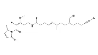 (E,9E)-14-bromo-9-(chloromethylidene)-N-[(E)-3-methoxy-5-(2-methyl-5-oxo-2H-pyrrol-1-yl)-5-oxopent-3-enyl]-6-methyltetradec-4-en-13-ynamide | |