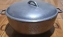A flat iron griddle called tawah, which is used to make flatbreads, was adopted from the Indians.[2][18] The karahi pot, also used by Chinese Jamaicans, originated in India.[18] The Indians were the first to manage growing rice in Jamaica, establishing the island's first successful rice mill in the 1890s,[50] and they dominated the island's vegetable production until well into the 1940s.[50]