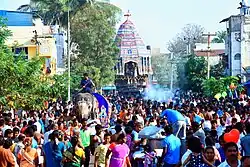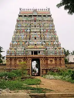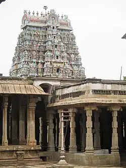 There are lot of inscriptions from various Chola kings from 11th - 12th century indicating grants to the temple.[2] The temple was widely expanded by Hoysala king, Someswara, the son of Vira Narasimha.[9] During 1236-37 CE, he built a lot of shrines namely Vallaliswara, Padumalisvara, Vira Narasingeswara and Somleswara evidently named after his grandfather Ballalla II, grandmother Padmaladevei, father Vira Narasimha and aunt Somala Devi.[9] The 7-tiered rajagopuram is also believed to have constructed by the Hoysala king.[9] There are separate shrines beyond the temple compound namely Aadhi having a typical structure as the main shrines. The temple and its pagodas were subject to frequent conquest between French and English forces between 1751 and 1755 CE.[10] The temple is being widely maintained by Vellalars and the Nattukottai Nagarathars during the 19th and early 20th centuries.[11]