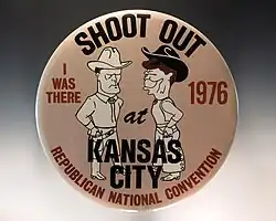 In Kansas City, Baker and his team narrowly won the floor fight for Ford, with the count of 1,187 to 1,070.[31] According to his biographers, among Baker's strengths in the role were consistently accurate delegate estimates, especially compared to the fluctuating numbers offered by Reagan's representative, John Sears.[32] Baker was hailed in a profile from The New York Times as a "Miracle Man."[33] His floor team included future campaign manager Paul Manafort.[34]