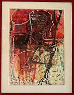 While in New York, Harrison surrounded himself with a group of friends that included James Baldwin and photographers Doug Quackenbush and Larry Clark. He drew inspiration from Jazz, a passion that ignited in him since his beginnings in Detroit, the philosophies of Carl Jung and became more and more consumed by an addiction to drugs and alcohol.[3][4] From the late 1950s throughout the 1970s he was featured in numerous group exhibitions, but it wasn't until the 1980s that he finally gained recognition of his own right. In 1983, he had his first solo exhibition at A Place Apart Gallery in Brooklyn, New York, and in 1987, the LedisFlam Gallery presented his unaided exhibition, "Forty Year Retrospective".[1][5]