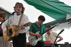 James Gordon performing at Hillside Festival in 2008. His sons, Evan and Geordie, are behind him.
