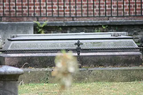 Gordon died at Greenwich Hospital on 8 January 1869 and was buried in the hospital grounds. The grave lies within an enclosed area of surviving graves within the generally cleared graveyard, now forming a pocket park immediately west of the entrance to National Maritime Museum.[6]