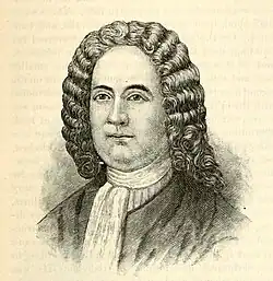 James Logan apprenticed with a Dublin-based linen draper, received a good classical and mathematical education, and acquired a knowledge of modern languages not common at the period. The War of 1689–91 obliged him to follow his parents, first to Edinburgh, and then to London and Bristol, England where, in 1693, James replaced his father as schoolmaster.[4] In 1699, he came to the colony of Pennsylvania aboard the Canterbury as William Penn's secretary.[5] Logan is described as "tall and well-proportioned, with a graceful yet grave demeanor. He had a good complexion, and was quite florid, even in old age; nor did his hair, which was brown, turn grey in the decline of life, nor his eyes require spectacles."[4]