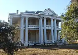 The R.S. Dilworth House at 903 St. Lawrence St., Gonzales, Texas, was built in 1911 using St. Louis pressed brick and eight massive Corinthian columns.