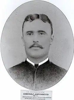 Sangster had applied for admission into the Queensland Police Force on 21 May 1890 and was sworn in on 4 August 1890, aged 22 years. He had been living in the colony for three years residing for some of that time in Charters Towers. Originally from Aberdeenshire in Scotland, he had no relatives in Queensland. He arrived in Ipswich in November 1890 and was based at the North Ipswich Police Station.[1]