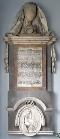 He died in 1782 and is commemorated by a mural monument in Teigngrace Church (see photo, right), as is his wife.[14] The church was also rebuilt in 1787 by three of his sons in memory of their parents.[15] Pevsner thought highly of this family stating: "The Templers were people of taste, as is clear from the building and their monuments".[16]