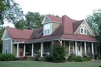 The James William Boggs House is a historic house on Austin Street in Pangburn, Arkansas. Located on the east side, between Torrence and South McKee Streets, it is a 1+1⁄2-story rambling wood-frame structure with a variety of gables, porches and projecting sections. Its front facade is dominated by a single-story hip-roofed porch supported by tapered square columns, and shelters a pair of entrances. To the rear of the main block a shotgun house was moved and attached. It was built in 1908 and is one of a small number of houses surviving from the period in White County.[2]