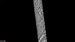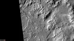 Janssen Crater is an impact crater in the Arabia quadrangle on Mars at 2.7° N and 322.4° W. and is 154 km in diameter. Its name was approved in 1973, and refers to French astronomer Pierre Janssen.[1] Some close up images of the crater reveal layers in a floor deposit. A picture below show these layers, as well as dark slope streaks. The darker the streak, the younger it is. The layers on the floor of Janssen may have been formed on the bottom of lakes.[2][3][4]