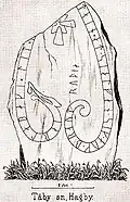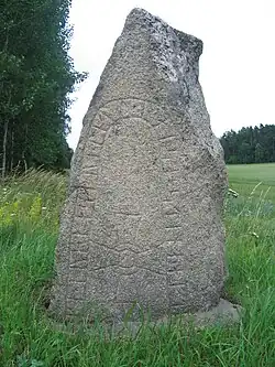 The inscriptions have led to a controversy on the meaning of the Old Norse verb eiga ("to own"), and to a debate on the origins on the hundred division.[4] It is debated whether he really owned the hundred or if he was appointed as its chieftain (hersir) by the King of Sweden, and a final conclusion is probably impossible to arrive at.[2]