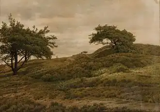 Important influences on his work were the Barbizon School as well as the landscape traditions of the Flemish and Dutch school.[3] The landscapes of Joseph Lies also were an influence on his work.[6] The artist preferred dark tones and usually depicted nature without any human presence.[3]