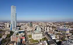 In 1804, Alexander Hamilton, now a private citizen, was focused on increasing manufacturing in the greater New York City area. To that end, he helped to create the "Associates of the Jersey Company" which would lay the groundwork for modern Jersey City through private development. While envisioning the future of Jersey City, Hamilton said: "One day, a great city shall rise on the western banks of the Hudson River."[76][77] The consortium of 35 investors behind the company were predominantly Federalists who, like Hamilton, had been swept out of power in the election of 1800 by Thomas Jefferson and other Democratic-Republicans. Large tracts of land in Paulus Hook were purchased by the company with the titles owned by Anthony Dey, who was from a prominent old Dutch family, and his two cousins, Colonel Richard Varick, the former mayor of New York City (1789–1801), and Jacob Radcliff, a Justice of the New York Supreme Court who would later become mayor of New York City from 1810 to 1811 and again from 1815 to 1818. They laid out the city squares and streets that still characterize the neighborhood, giving them names also seen in Lower Manhattan or after war heroes (Grove, Varick, Mercer, Wayne, Monmouth and Montgomery among them).[78] John B. Coles, a former New York State senator (1799–1802), purchased the area north of Paulus Hook known as Harsimus and laid out a grid plan centered around a park. Following Hamilton's death, Coles proposed naming the park in his honor as "Hamilton Park."[79]