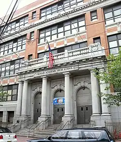 - ^ Goodnough, Abby. "Once Upon a Time, When High Schools Were Palaces", The New York Times, October 6, 1996. Accessed December 21, 2011. "NINETY years ago, an enormous Beaux Arts building went up on a hill overlooking the Hudson River. It had Corinthian columns, terrazzo floors and a vestibule lined with English marble. It could have passed for a palace, or at least a palatial estate. But it was neither. It was, in fact, William L. Dickinson High School, the first public secondary school in Jersey City.... When it opened in 1906, Dickinson had a 2,000-seat auditorium used not just for school functions but for political debates, plays and concerts."