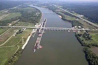 ![]() Aerial view of Jesse Stuart Memorial Bridge and Greenup Lock & Dam | |
