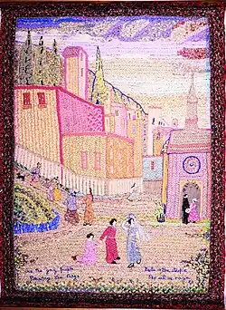 Kinsley’s braidings have also been featured in a 2004 exhibit “Braidings and Benches: The Oneida Community and the Arts and Crafts Movement” at Colgate University and at an exhibit titled “The Braided Wall Hangings of the Oneida Community” at Fountain Elms, Munson-Williams-Proctor Arts Institute in 1978.[18] Kinsley's braiding The Picnic is in the collection at The Ruth and Elmer Wellin Museum of Art at Hamilton College.[19]