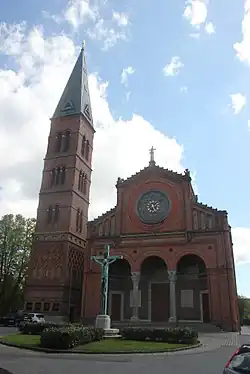 The Jesus Church (Danish: Jesuskirken) is a church situated just off Valby Langgade in the Valby district of Copenhagen, Denmark. It was commissioned by second-generation Carlsberg brewer Carl Jacobsen and designed by Vilhelm Dahlerup. Noted for its extensive ornamentation and artwork, it is considered to be one of the country's most idiosyncratic and unconventional examples of church architecture. The church was built as a mausoleum for Carl Jacobsen and his family and is located close to their former house as well as the former Carlsberg brewery site. Their sarcophagi lie in the crypt. Throughout the church, there are ornaments and inscriptions associated with the family.