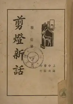 Jiandeng Xinhua (剪燈新話, lit. New Stories Told While Trimming the Wick or New Stories After Snuffing the Lamp; 1378) is an early Ming dynasty collection of Chinese stories by Qu You (瞿佑).[1][2] The book consist of 21 stories in 4 volumes. It was succeeded by a second book Jiandeng Xinhua wai er zhong.[3]