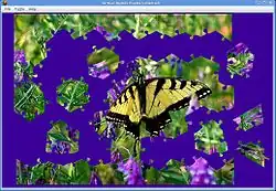 A jigsaw puzzle (with context, sometimes just jigsaw or just puzzle) is a tiling puzzle that requires the assembly of often irregularly shaped interlocking and mosaicked pieces. Typically each piece has a portion of a picture, which is completed by solving the puzzle.
