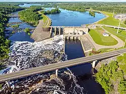 The Jim Falls Hydroelectric Dam is a hydroelectric dam on the Chippewa River by Jim Falls, Wisconsin. It is owned and operated by Xcel Energy. The dam forms Old Abe Lake. It is one of the six hydroelectric dams on the Chippewa River, the others are in Holcombe, Cornell, Wissota, Chippewa Falls, and Eau Claire.[2][3]