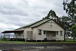 The Jimbour Memorial Hall is the second such building on that site, the first having blown down in a severe storm in 1949.[14]