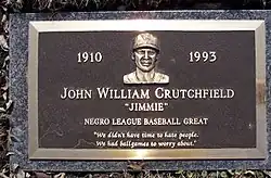 Crutchfield died in Chicago in 1993 and was interred in the nearby Burr Oak Cemetery, Alsip, Illinois,[3] buried in an unmarked grave until 2004 when Peoria, Illinois anesthesiologist Jeremy Krock contacted members of the Society for American Baseball Research to try to get a proper headstone on the grave of Crutchfield, who originally comes from the same town as Krock. This launched the Negro Leagues Baseball Grave Marker Project of which Dr. Krock still works with today.[4]