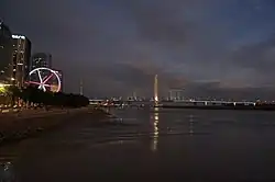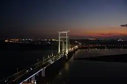 The Jin River Bridge (simplified Chinese: 晋江大桥; traditional Chinese: 晉江大橋; pinyin: Jìnjiāng Dàqiáo) is a cable-stayed bridge over the Jin River in Quanzhou/ Jinjiang, Fujian, China. The bridge measures 2,740 metres (8,990 ft) long, 38 metres (125 ft) wide, and approximately 132.125 metres (433.48 ft) high.[1]