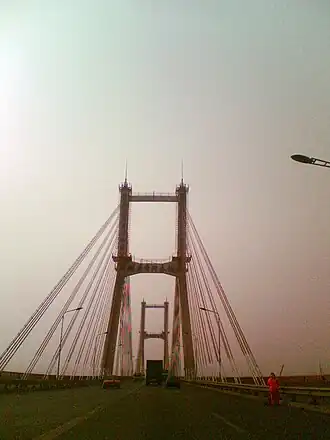 The Jinan Yellow River Bridge (Chinese: 济南黄河大桥; pinyin: Jǐnán Huánghé Dà Qiáo), also known as the Jinan Yellow River Highway Bridge (Chinese: 济南黄河公路桥; pinyin: Jǐnán Huánghé Gōnglù Qiáo), is a cable-stayed road bridge across the Yellow River in the city of Jinan, Shandong Province, China.