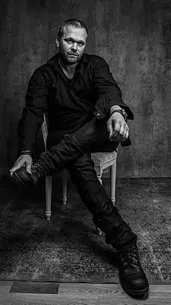He has a Britpop/Indie pop band named Narcissistic Street. They released the CD Soldier in Me in 2008.[35][36] The album was recorded before he made his big breakthrough as the medieval knight and had to postpone the album release due to massive Arn project.[6] In December 2011 the band performed at the European premiere of David Fincher's The Girl with the Dragon Tattoo.[37]