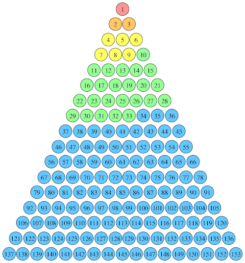 The number 153 is the 17th triangular number, as well as the sum of the first five positive factorials, and is associated with the geometric shape known as the Vesica Piscis (literally, "bladder of a fish") or Mandorla, which Archimedes, in his Measurement of a Circle, referred to in the ratio 153/265 as constituting the "measure of the fish", being an imperfect representation of 1/√3.[30] Augustine of Hippo argued the significance of 153 being the sum of the first 17 integers is that 17 represents the combination of divine grace (the seven gifts of the Holy Spirit) and law (the Ten Commandments).[31][32]