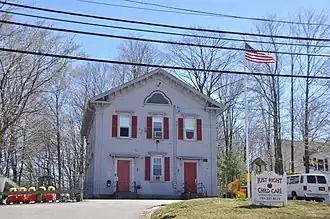 The John Adams School is a historic school building in Weymouth, Massachusetts. The Greek Revival/Italianate school building was built in 1855, on the site of Weymouth's first school building (1681). It is Weymouth's oldest surviving school building. It is 2+1⁄2 stories tall, with a front-facing gable roof that has a bracketed gable. The main facade is three bays wide, with windows that have bracketed surrounds, and a pair of entrances with bracketed cornices above.[2]
